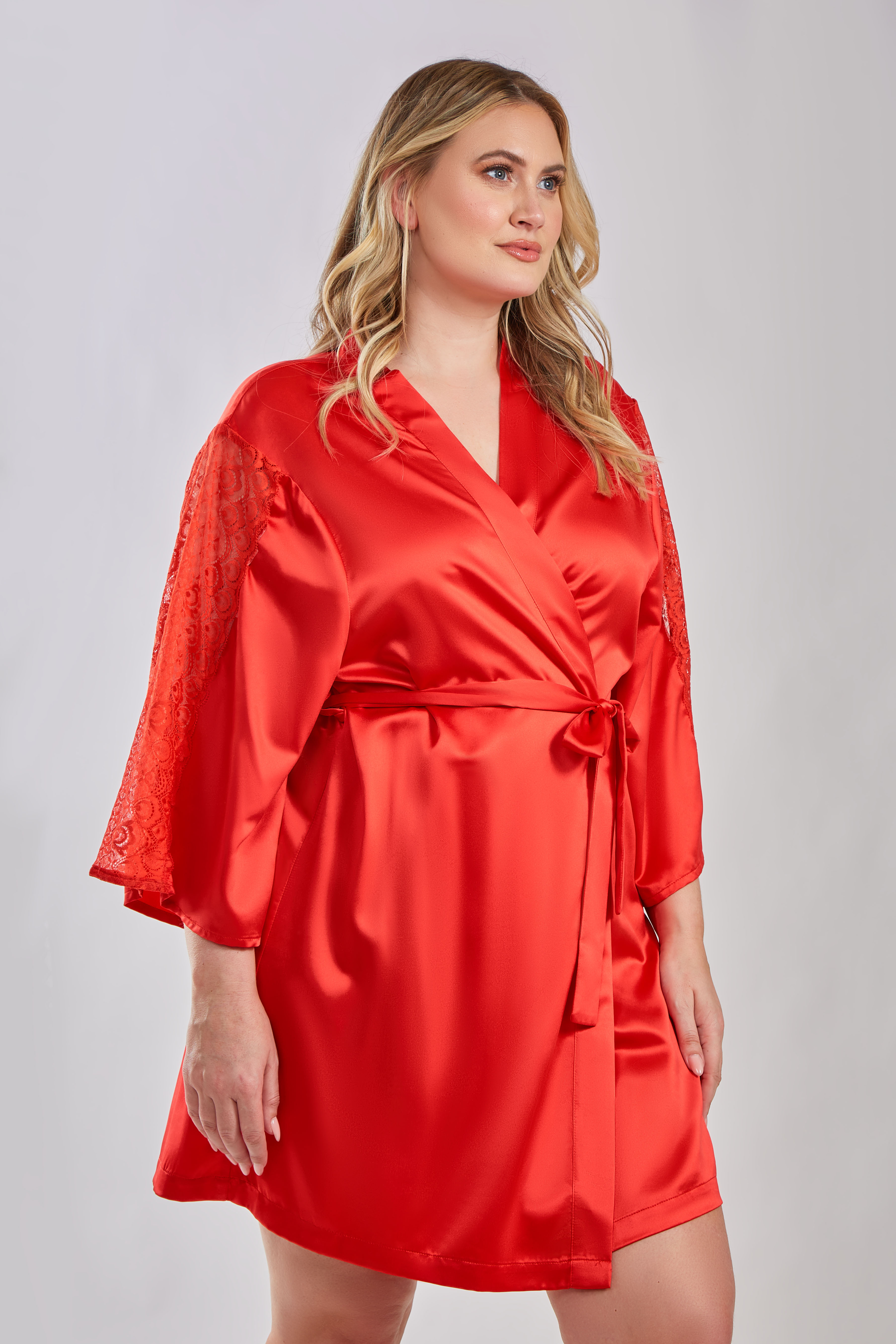 Dreamgirl Choose Options Eyelash Lace Open Back Robe MSRP: Was: Now: $39.99 Open back satin robe with eyelash lace trim and wide sleeves Robe features wide satin belt