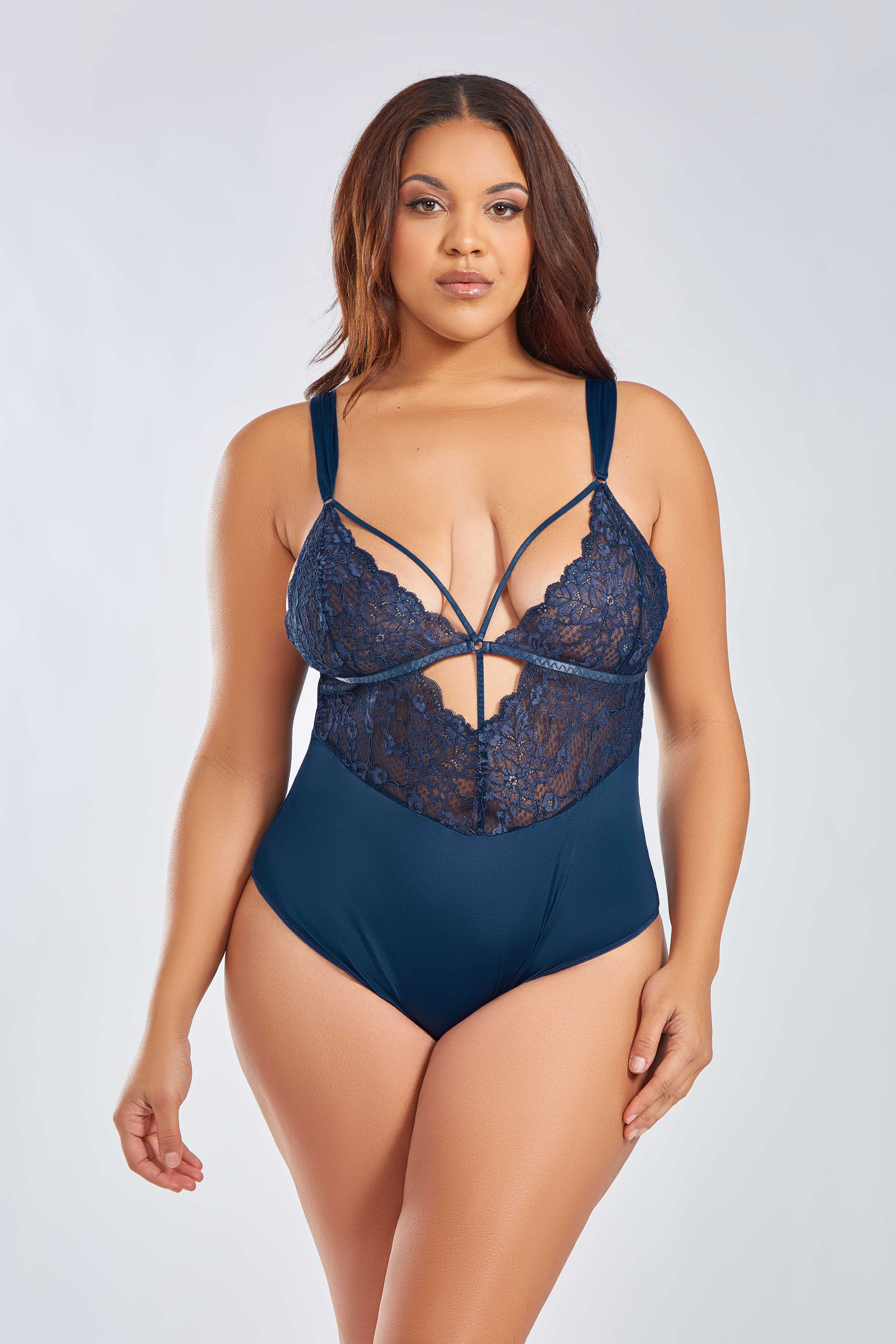 Dreamgirl Choose Options Tied Teal Lace Bustier & Thong MSRP: Was: Now: $42.99 Delicate eyelash lace with black cording detail and stretch mesh, cropped bustier and thong set Unde…
